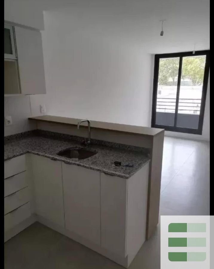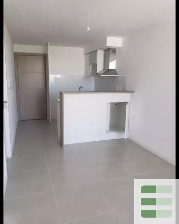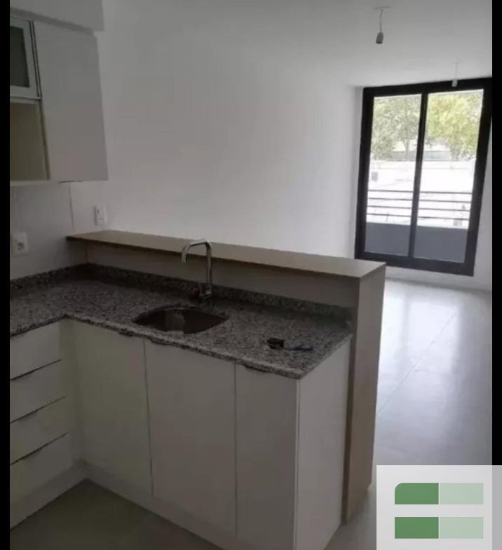 Cocina integrada con muebles aéreos y bajo mesada.