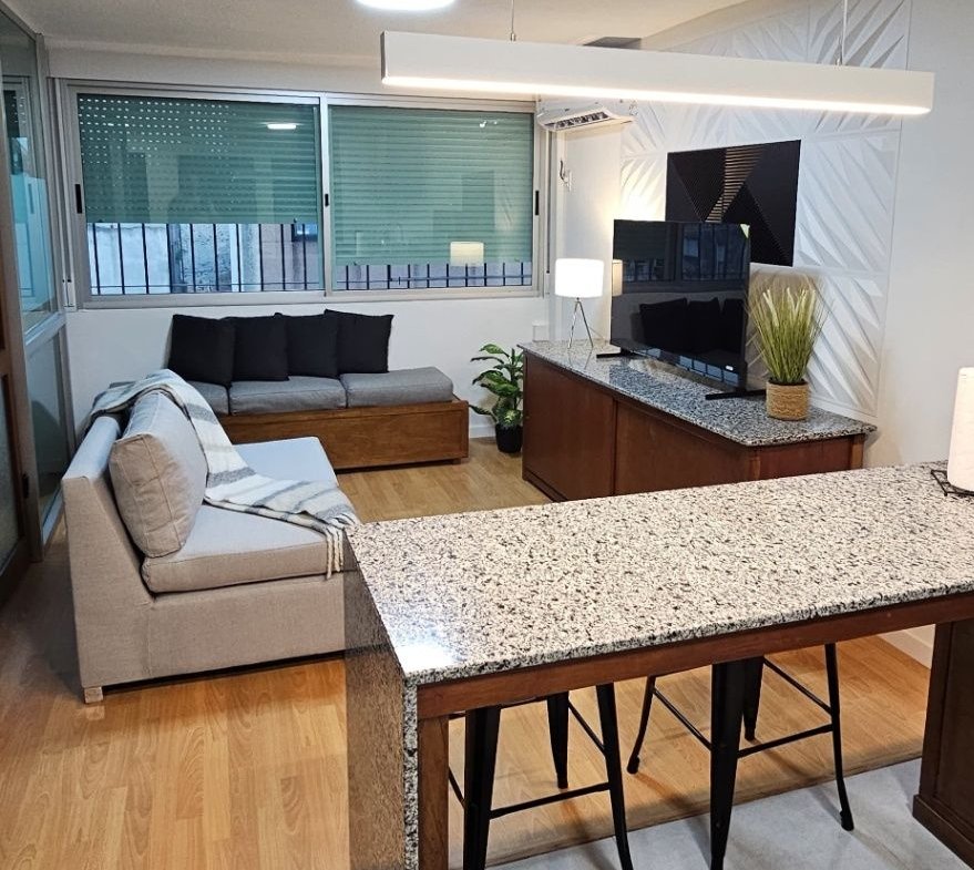 El baño completo, que cuenta con calefón, mampara de vidrio y el vestidor brindan un toque adicional de confort. La conectividad está asegurada con WiFi de alta velocidad. La modalidad de alquiler es flexible, permitiendo opciones por día, fin de semana, semana o mes, adaptándose a las necesidades de cada huésped. La ubicación es privilegiada, rodeada de restaurantes, cafeterías, comercios, atractivos turísticos, teatros, plazas y museos, y a pocos pasos del mar, lo que facilita la movilidad en la zona.