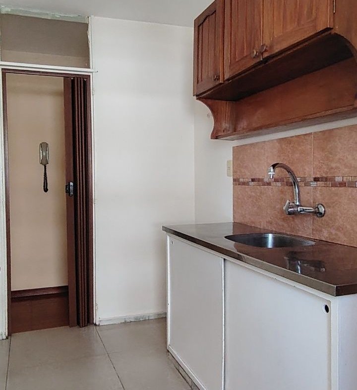 Cocina definida con muebles aéreos y bajo mesada.