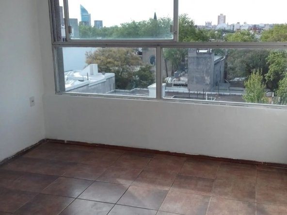 * Living comedor de buen tamaño con **gran ventanal de piso a techo** y vista despejada