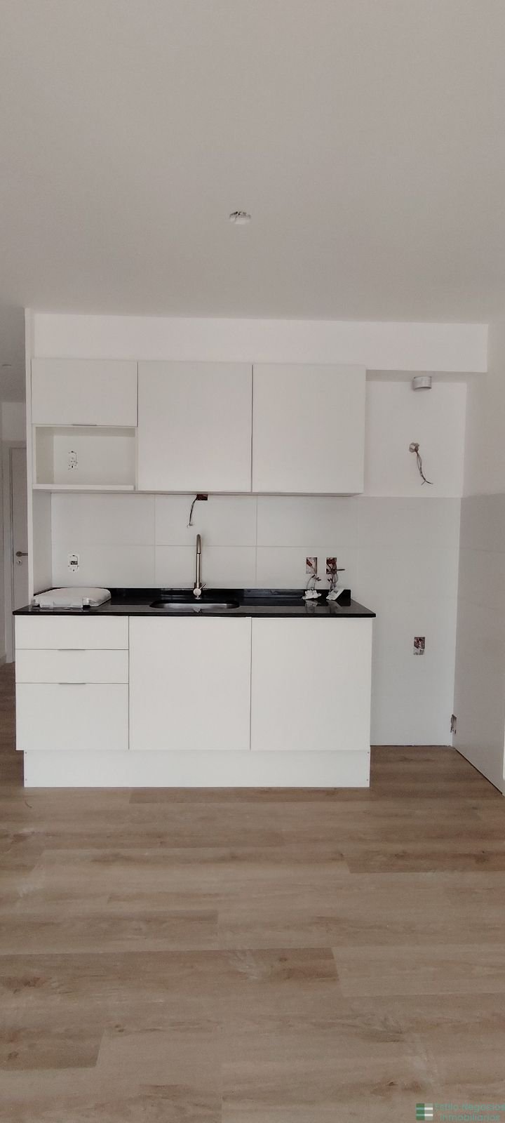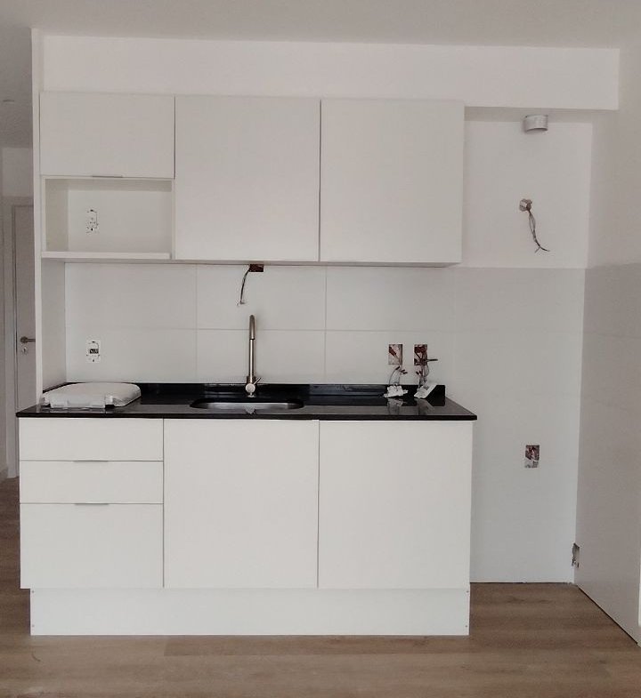 Cocina integrada con muebles aéreos y bajo mesada
