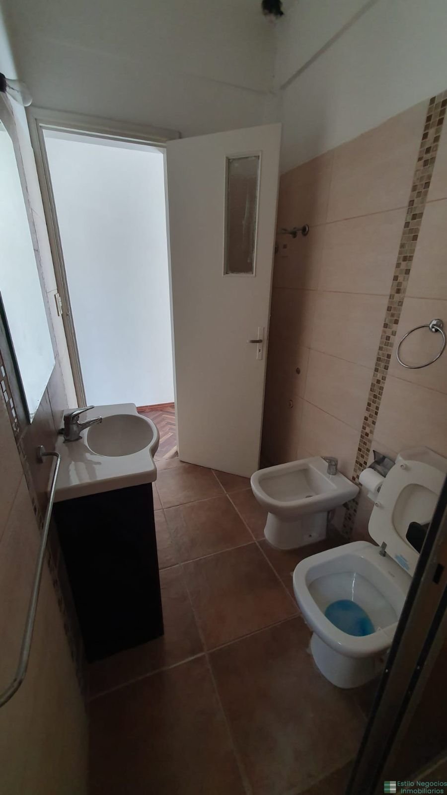 Baño completo con mampara y conexión para lavadora y ventana que favorece la ventilación.