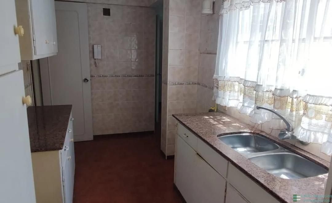 Cocina definida con muebles aéreos y bajo mesada con pileta doble