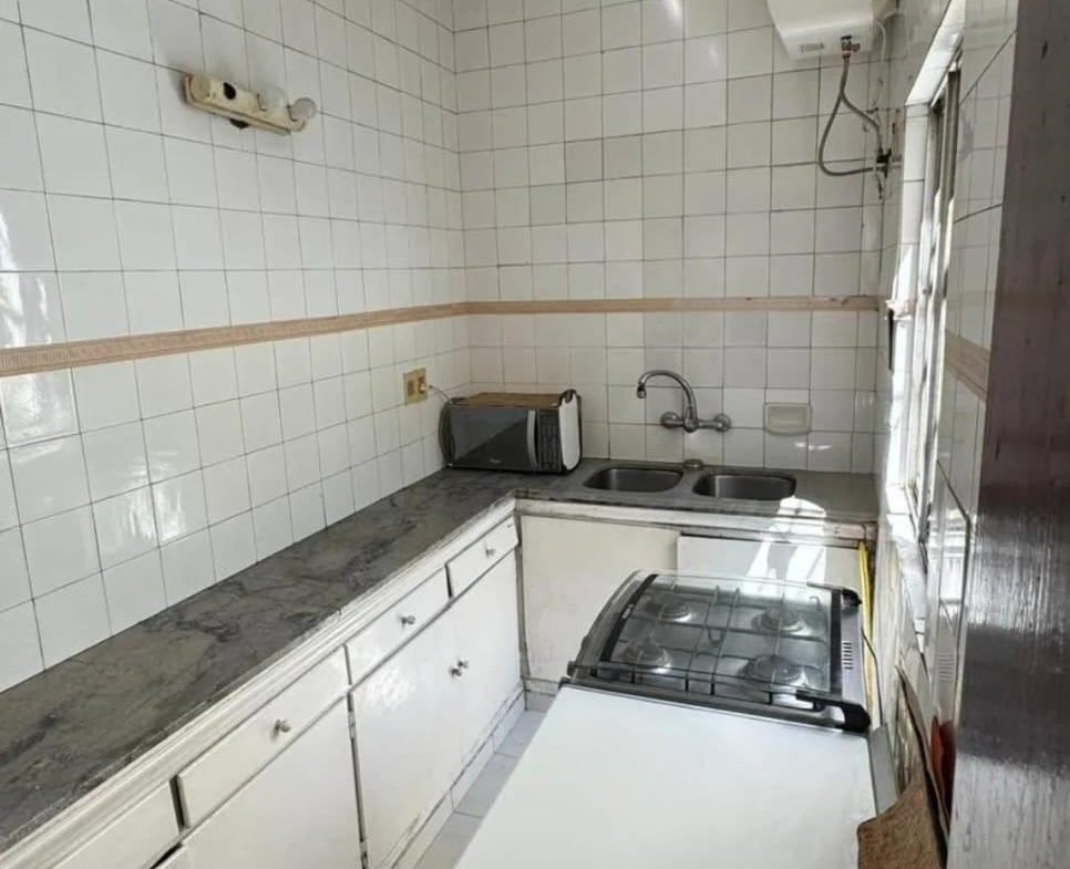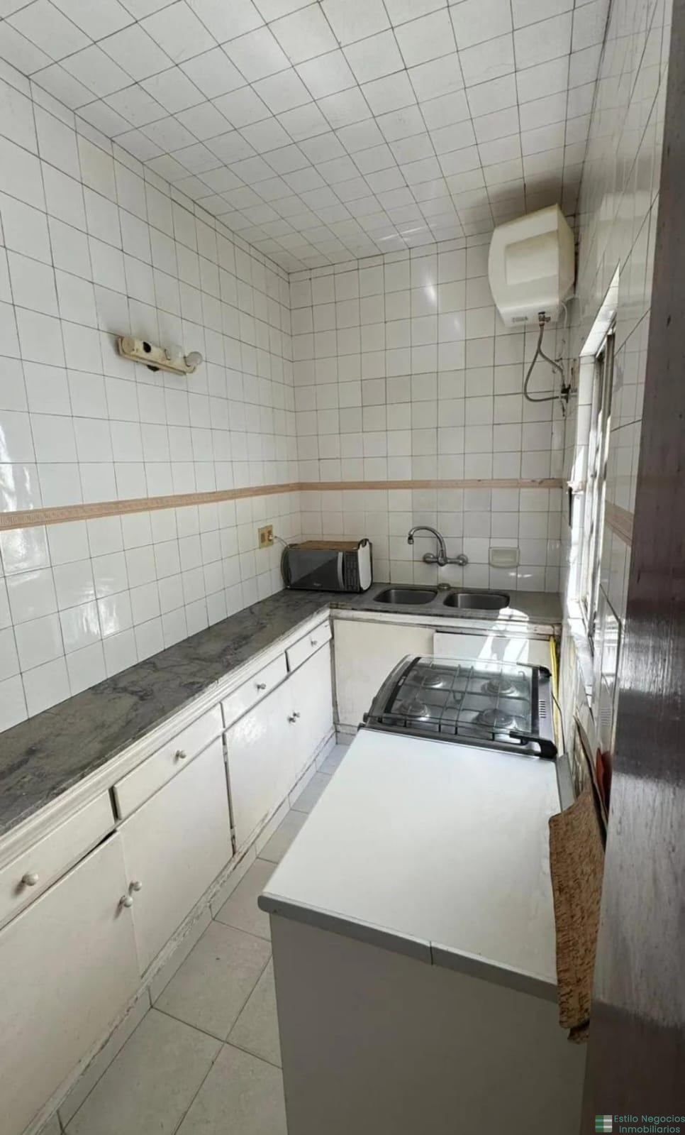 Cocina definida con muebles aéreos y bajo mesada.